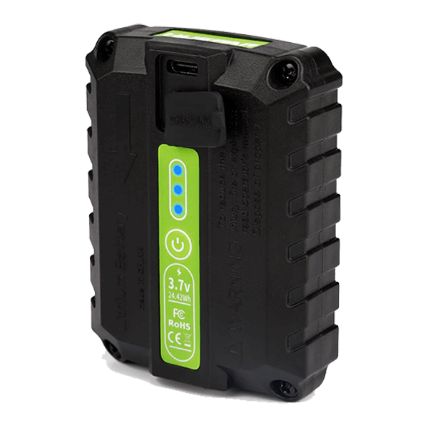 3.7V / 6600mAh Li-ion battery provides up to 6-12 hours of running time.