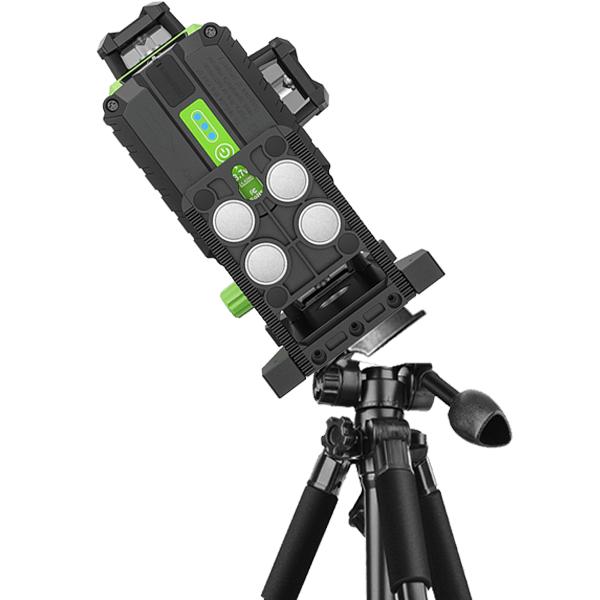With a micro-adjust knob, the integrated 360° strong magnetic bracket allows for quick positioning to metal surfaces for wall applications. This magnetic bracket offers 1/4"-20 and 5/8"-11 mounting threads to suit different tripod threads. The Huepar 704CG floor laser tool generates a 360° horizontal tiling laser on the floor or wall, providing all-around leveling coverage for the layout of tile, stone, brick, carpet, and hardwood flooring. With the lifting base, the laser lines can rise from the surface to go over and travel past uneven surfaces or obstructions between 0.95" and 3.23" in height.