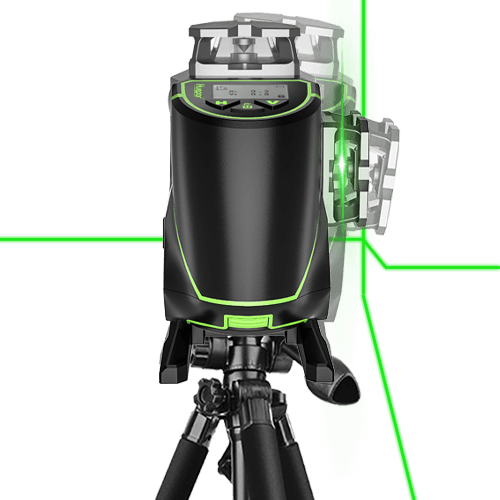 The Huepar S04CG laser tool features a 360° top horizontal line for ceiling installation and a 360° floor horizontal line for tiling. Its lifting base allows the floor laser to raise from 1" to 3.54" to project over uneven surfaces. This 4D cross line laser level offers comprehensive coverage for tile, stone, brick, carpet, and hardwood flooring. Utilizing Osram green laser technology, it provides higher visibility, longer range, increased stability, and greater energy efficiency.